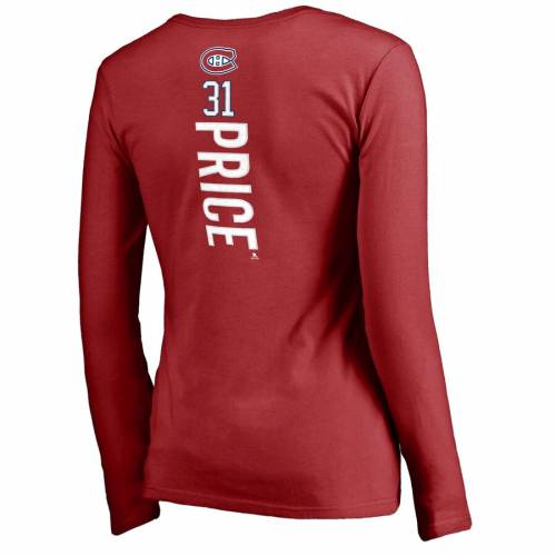 ファナティクス FANATICS BRANDED モントリオール カナディアンズ レディース スリム スリーブ Vネック Tシャツ 赤 レッド WOMEN'S & 長袖 【 SLIM SLEEVE RED FANATICS BRANDED CAREY PRICE BACKER NAME NUMBER FI
