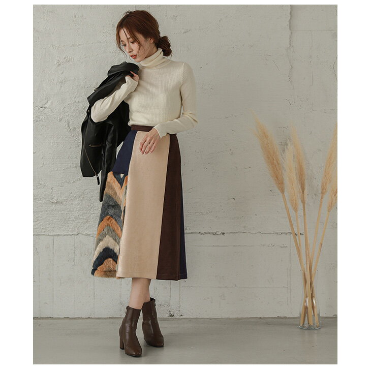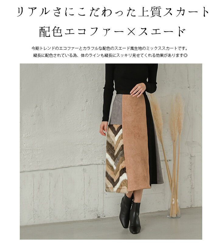 【残りわずか!在庫限り超価格】エコファー×カラフルスエード スカート ロング フレア レディース ミモレ丈 配色 スウェード ウエストゴム ボトムス フェイクファー 大人 おしゃれ 可愛い ブラック 秋冬M/L 【lgww-at3136】【即納:1-5営業日】宅別